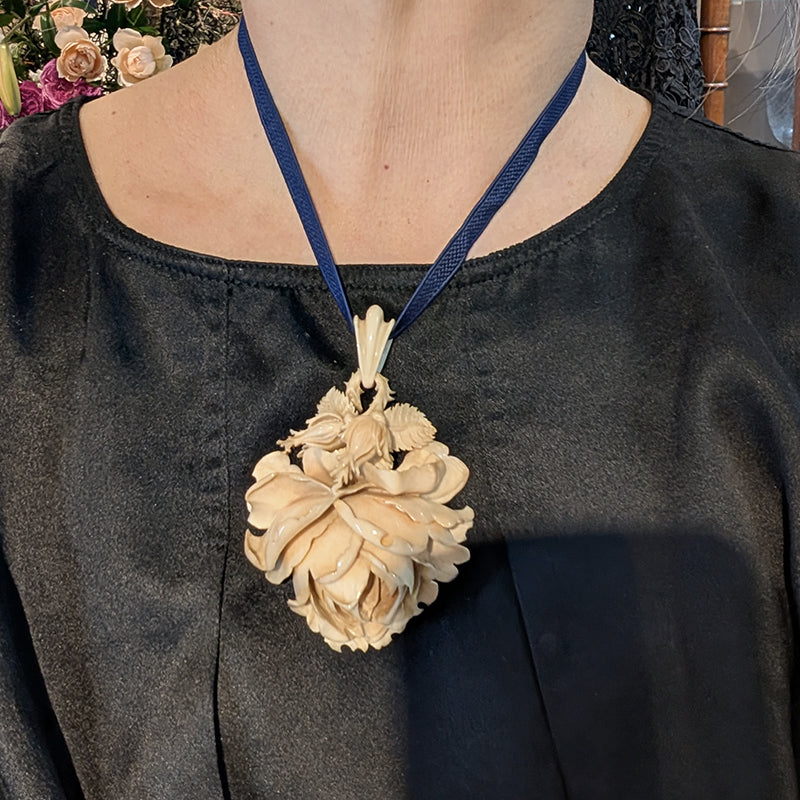 素晴らしい彫りのアイヴォリーペンダントです。